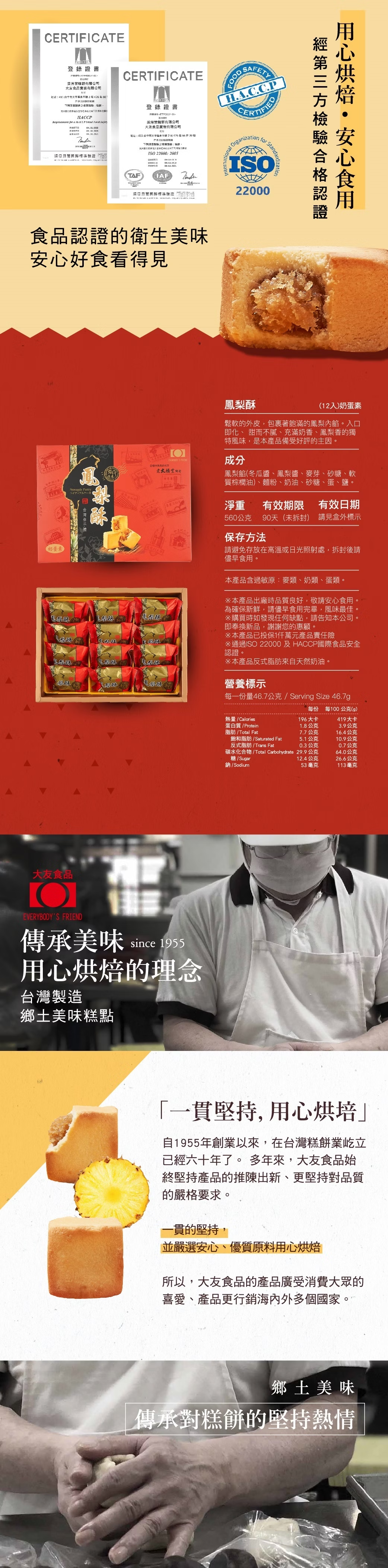 品 名 Name鳳梨酥 12入(蛋奶素)Pineapple Cake (12pcs, Lacto-Vegetarian)